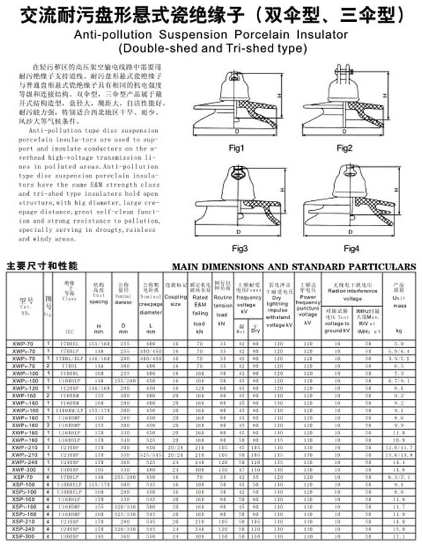 双伞型耐污悬式瓷绝缘